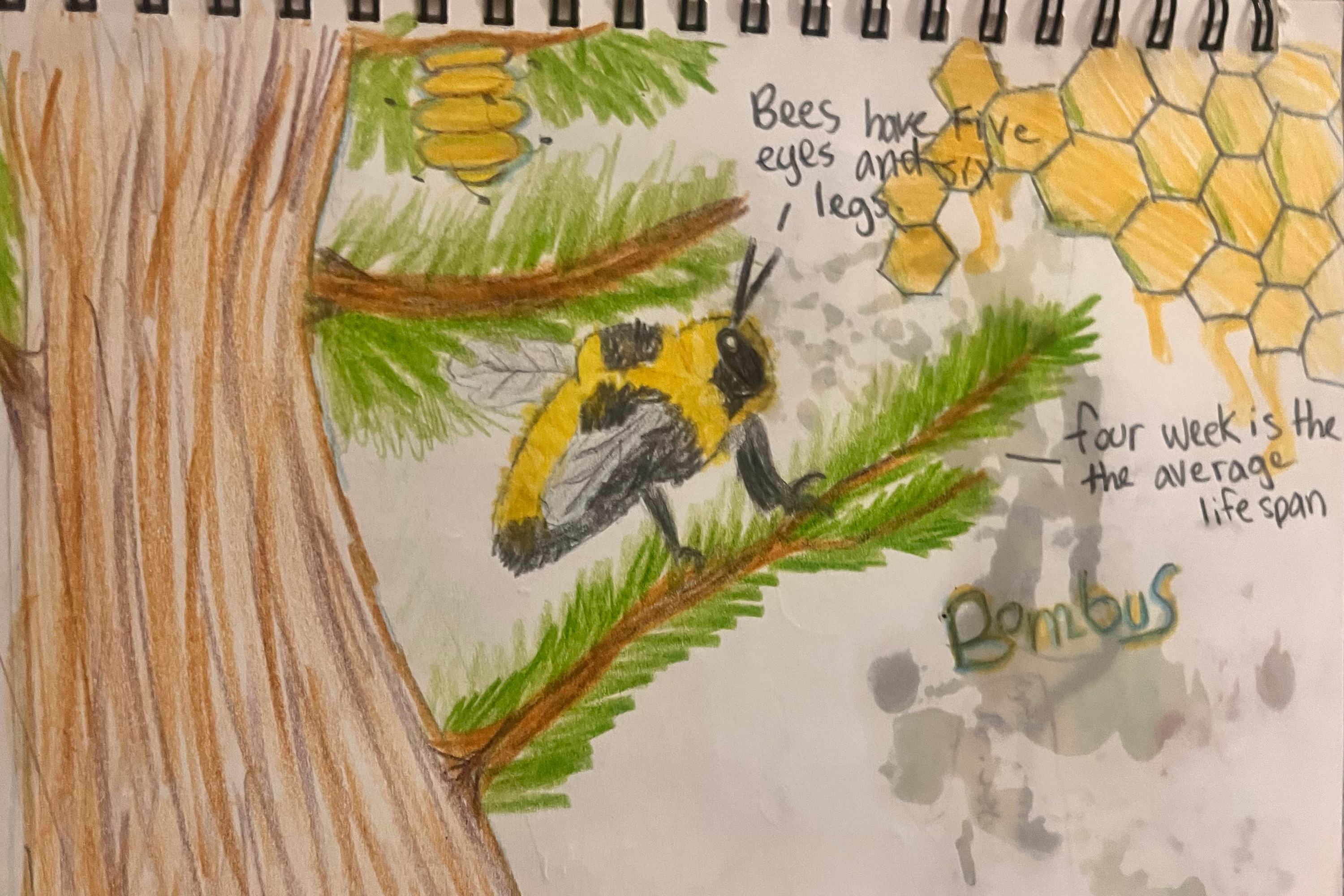 Middle school students have the opportunity to take an elective in nature journaling with Ms. Russell, where we explore, represent, and research the beautiful desert we call home. We use scientific drawing practices to accurately represent the animals we’re learning about and focus on proportion and elements of graphic design to enhance our work. We also use our own campus as our lab, drawing birds we’ve identified by sight or by song in our rainwater gardens.
