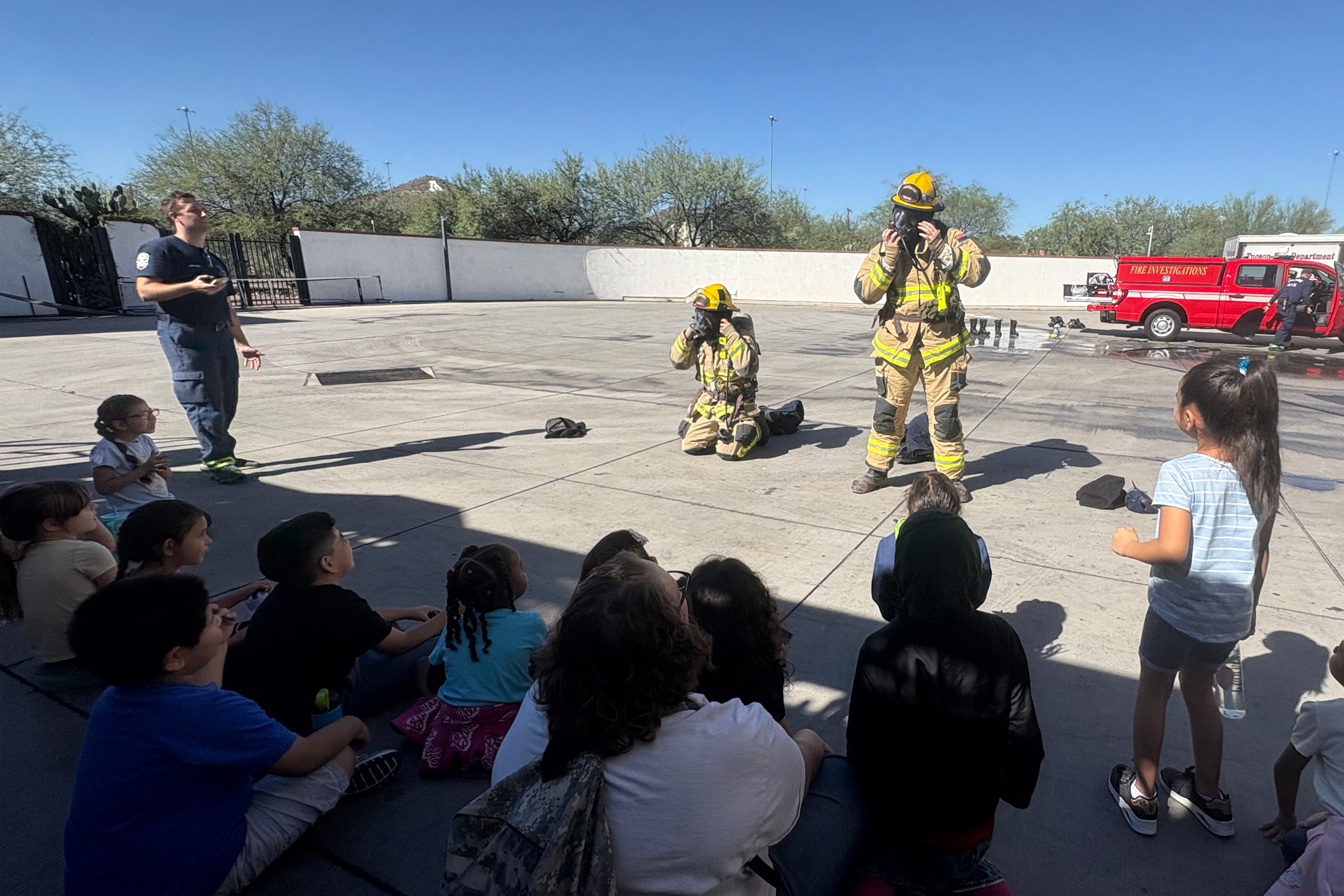 Ms. Lily’s class went on a fire trip to Tucson Fire Station 1! They saw and experienced what it is like to be a fire fighter. They learned about different kinds of engines and looked inside. They sprayed down cones with the powerful hose. They even got to see some firefighters get in uniform and slide down the pole. We left with more appreciation for our community helpers!